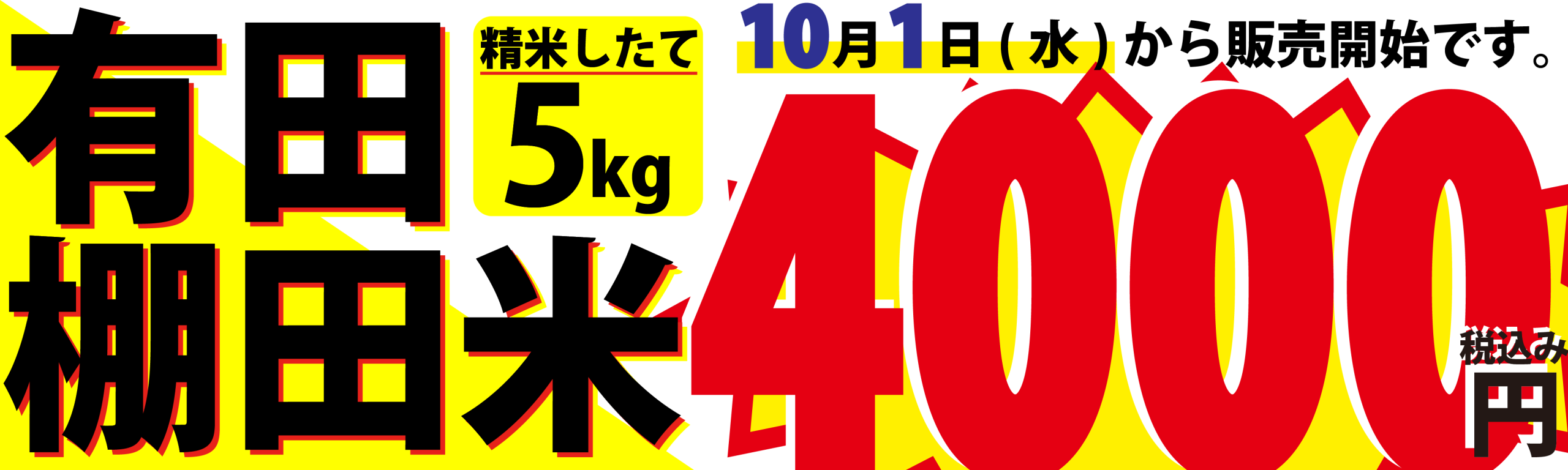 有田棚田米は5kgで4,000円(税込み)で販売中です。
