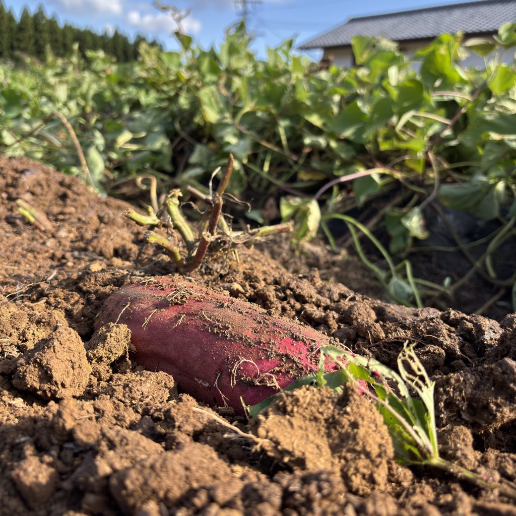 掘ってみると、土の中にはゴロゴロときれいなシルクスイートと安納芋。