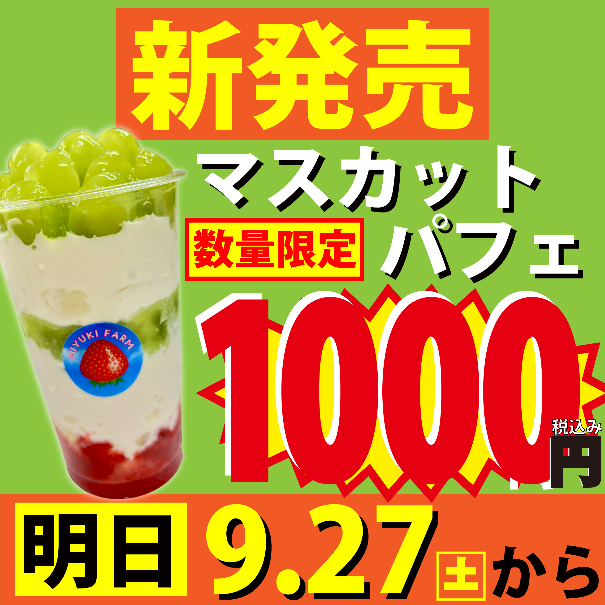 明日9月27日11時から、待望の「マスカットパフェ」が登場します!🍇🍨